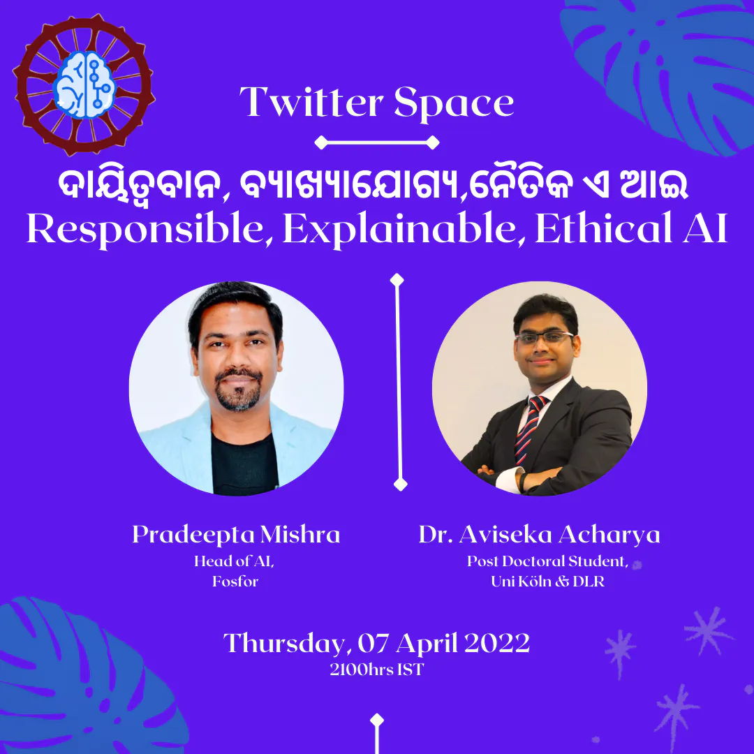 - Led by community member Dr. Aviseka, we have started a series of Twitter Spaces to discuss various topics in AI/ML in local Odia language.